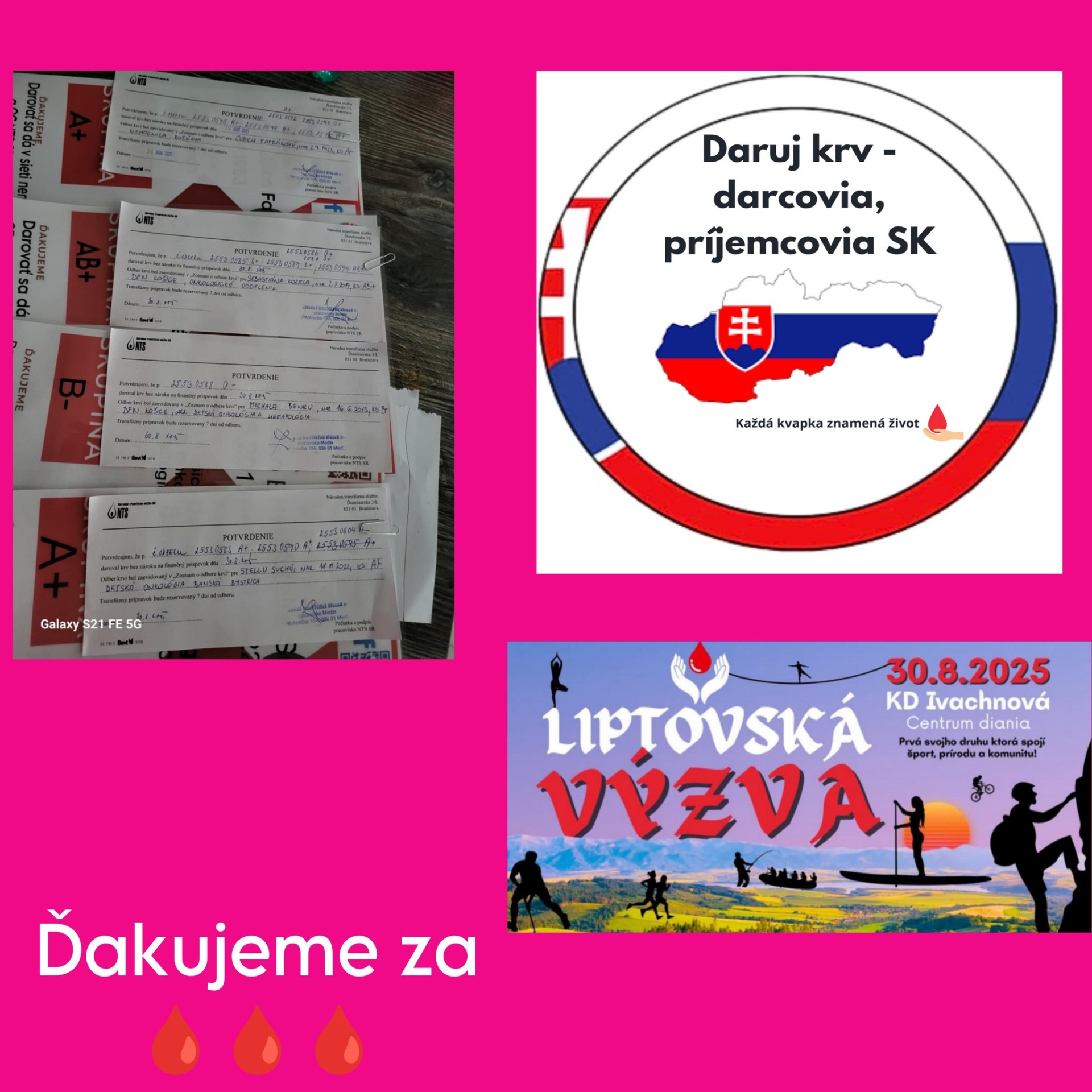Súbežne sme totiž robili s našimi darcami odber aj na Liptovskej športovej výzve v Ivachnovej, ktorá sa uskutočnila o dva týždne v sobotu 30.8.2025. Časť registrovaných darcov z Likavskej akcie sme presmerovali do Ivachnovej. Viac-menej z dôvodu, že sme nechali len 3-mesačný odstup medzi odbermi a mnoho žien, ktoré môžu darovať až po štyroch mesiacoch už do Ivachnovej mohlo prísť. Popri športových hrách, vodných splavoch sa na tejto Liptovskej športovej výzve zišlo 32 darcov, kde po vyradení znovu kvôli dovolenkám a cestovaniu, profesionálny tím úžasných ľudí z Národnej transfúznej služby z Martine, odobral krv 15-tim darcom.