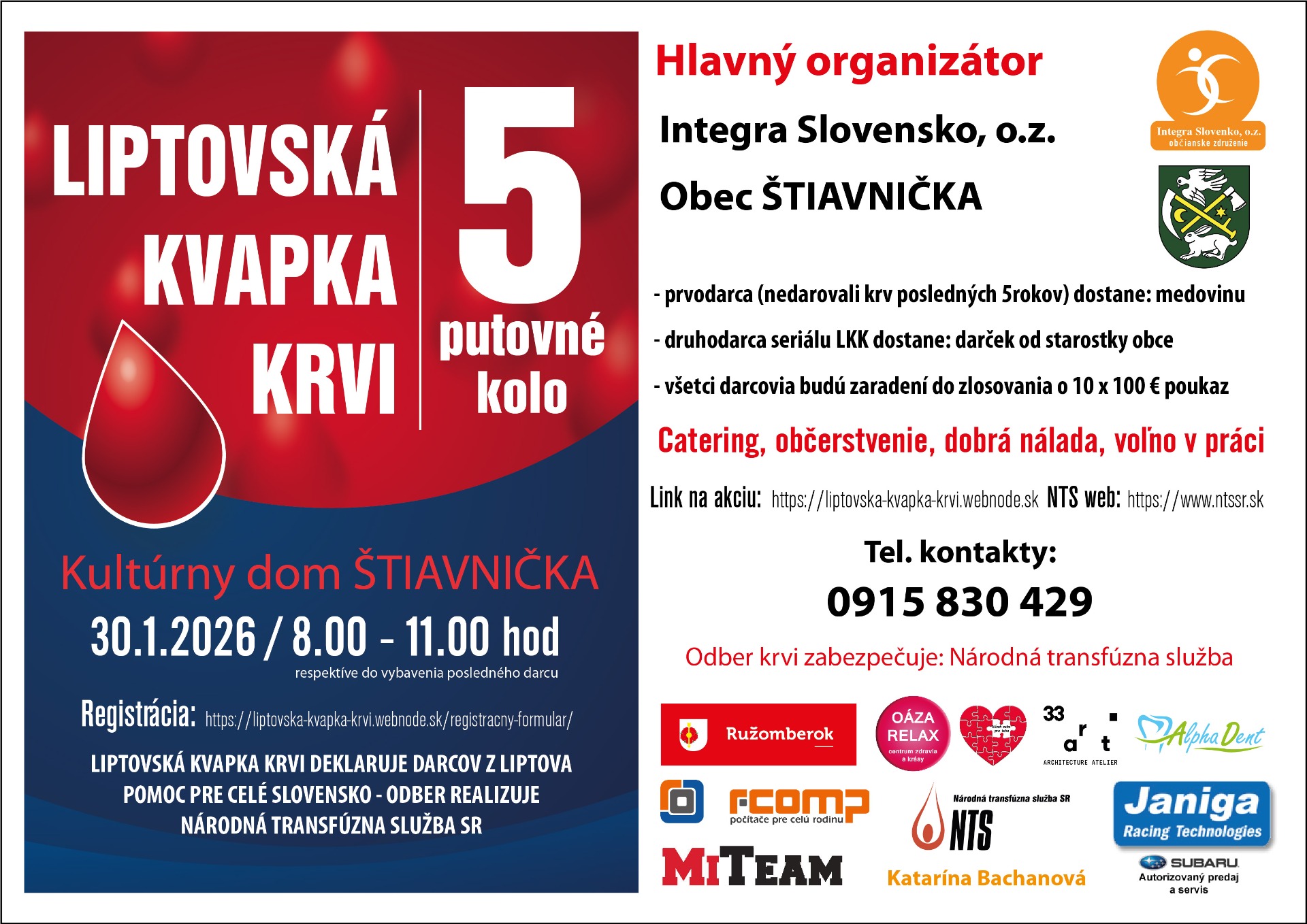Po dlhšej pauze od poslednej organizovanej akcie v Likavke sme dostali možnosť vkročiť do nového roka 2026 s pokračovaním Liptovskej kvapky krvi v Štiavničke.